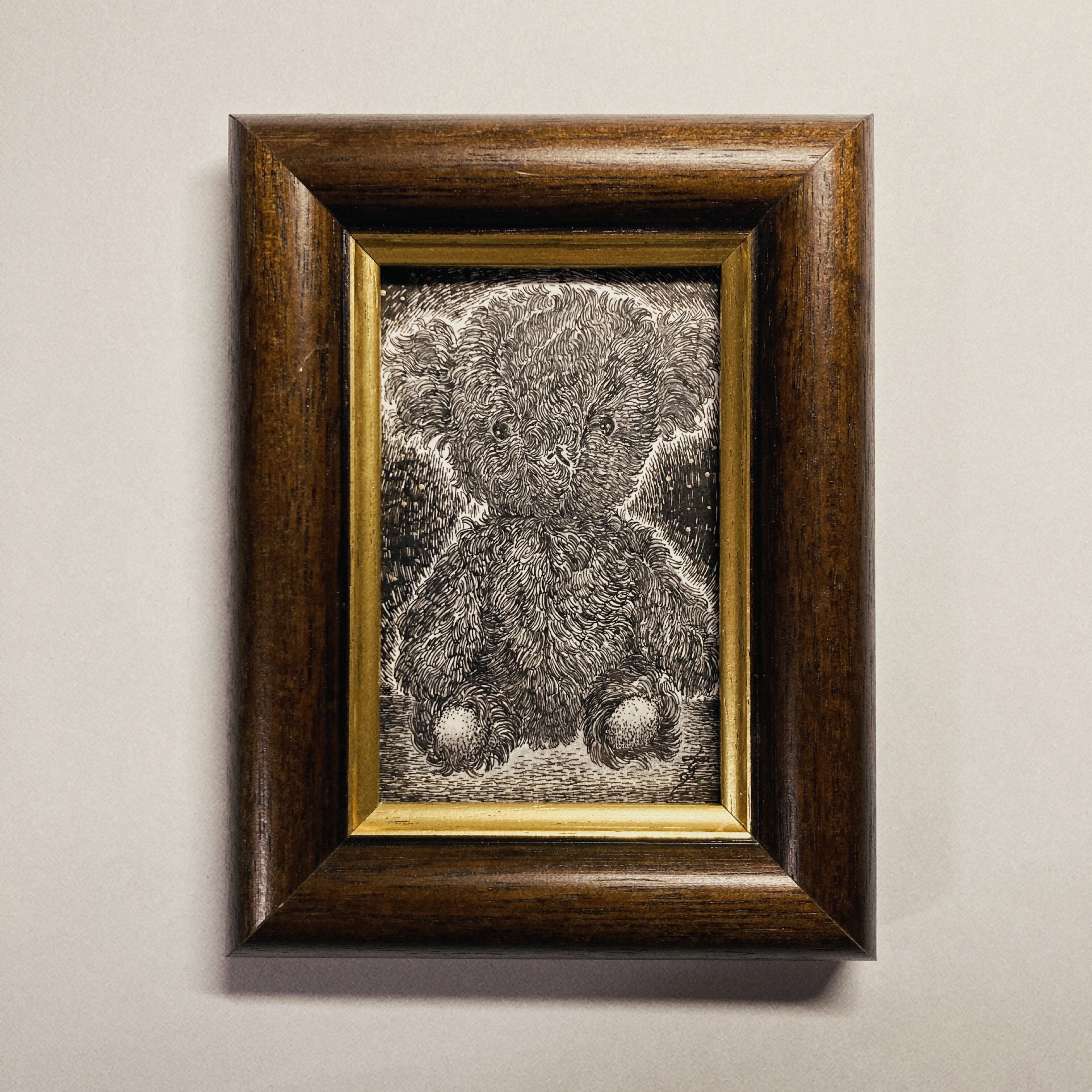 素材:ケント紙、インク、鉛筆、アルコールインク サイズ:縦12.6cm×横9.6cm(額装込み)