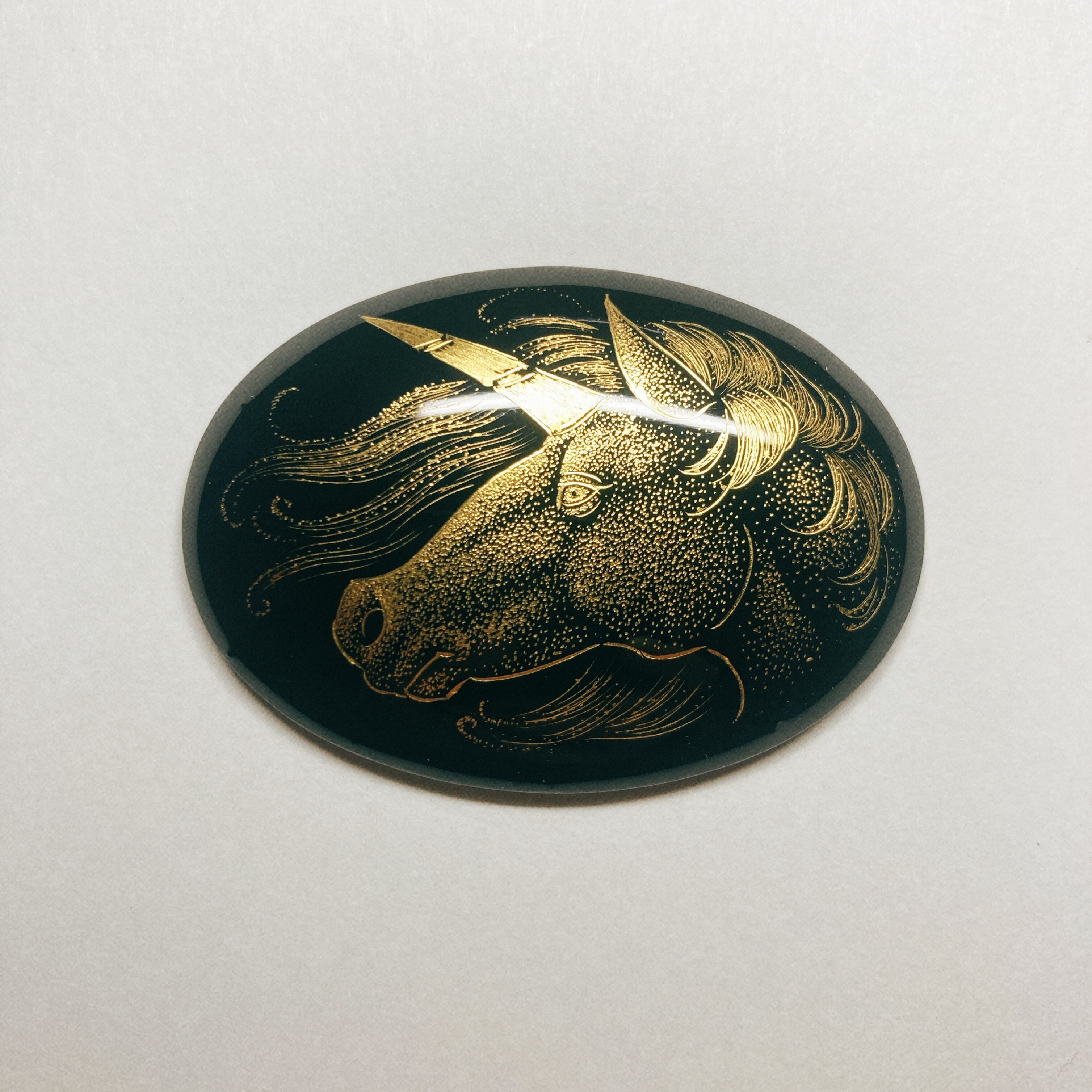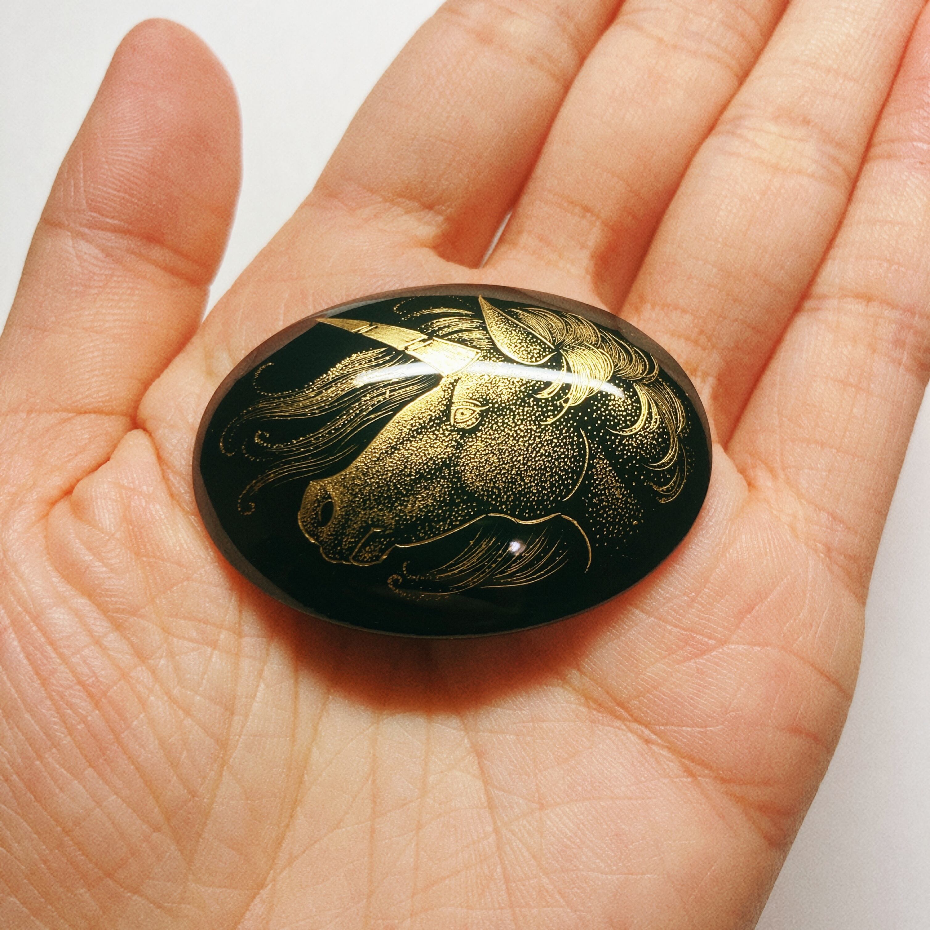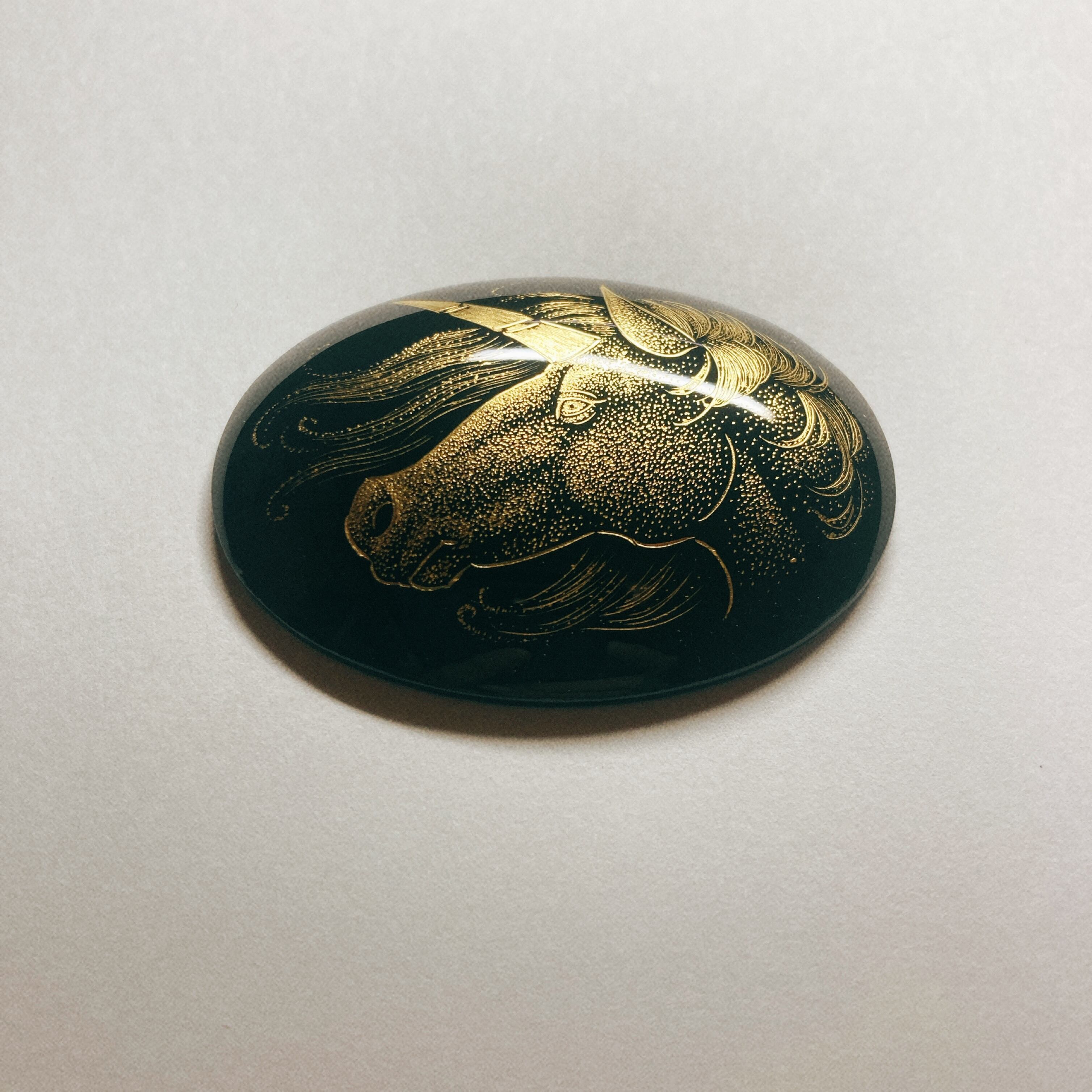 ふっくらとしたオーバル型の漆塗パーツに沈金を施しました。ブローチ等の金具を付けてアクセサリーにしたり額装するなど、ご自由にお使い下さい。