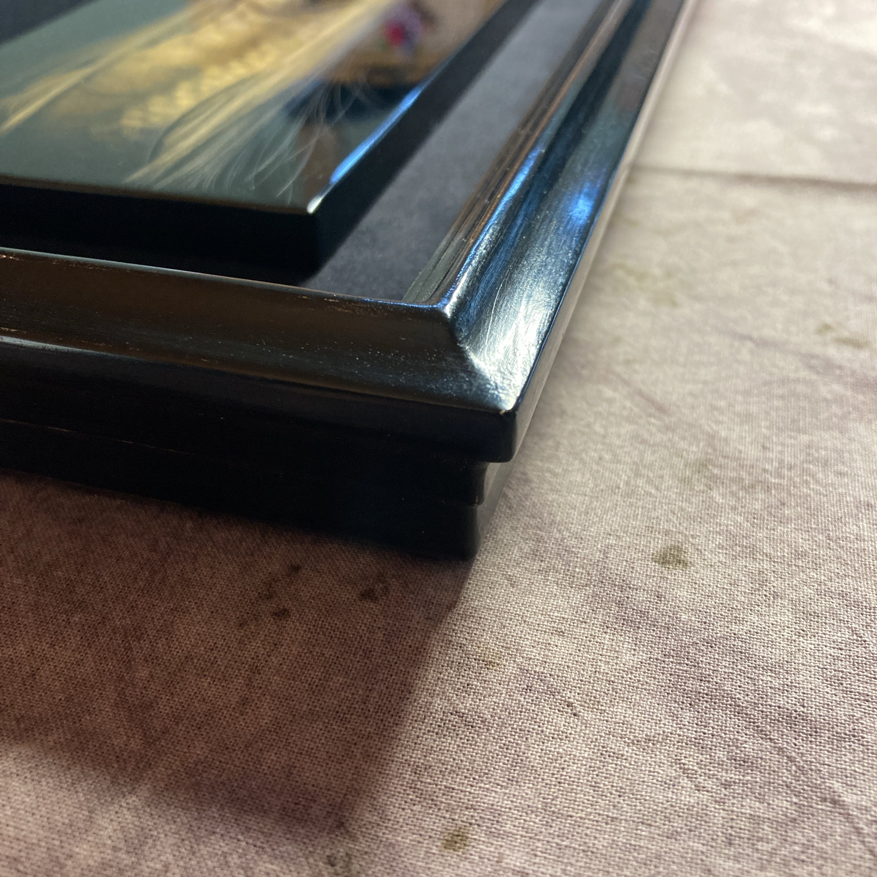 ※こちらの作品は磨かれた漆面の艶と金のきらめきを直接ご覧頂けるよう、アクリル板無しの額装となっております。